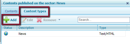 2. Definition, in the “Content List” block, of the type of contents that may be published there