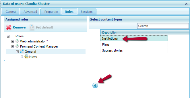Every user allowed to edit contents from the site is to be defined, indicating the types of contents for which the edition is allowed.