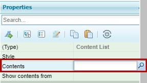 Example: The “Content List” block includes the “Contents” property to select the contents to be shown.