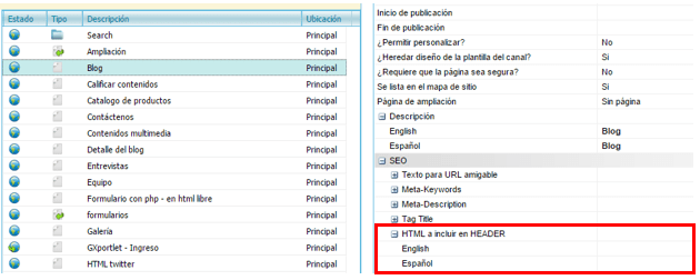 En GXportal contamos con la propiedad “HTML a incluir en el HEADER” a nivel de las propiedades de las páginas.