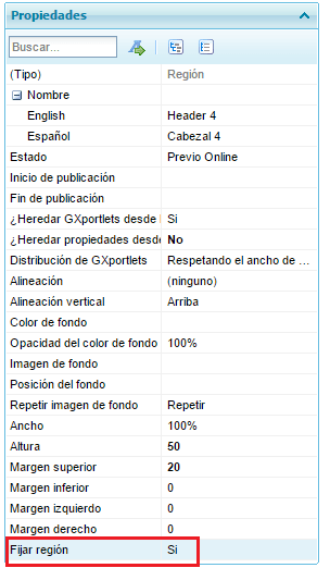Configurar la propiedad "Fijar región" con el valor “Si” para la región del cabezal, y para que esta funcione se debe configurar una altura fija para esta región.