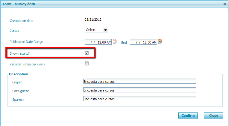 Para que al completar una encuesta/formulario el usuario vea los resultados del mismo, tenemos que: