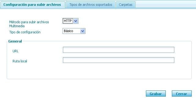 Método para subir archivos multimedia: especifica el método de transferencia utilizado para subir las imágenes al servidor, en GXportal 5.0 se realiza únicamente utilizando HTTP.