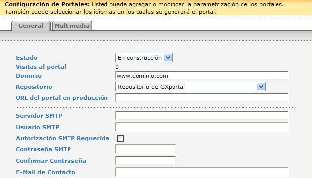 Email del Administrador de GXportal: e-mail del administrador del sitio web.