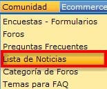 Para terminar la configuración SMTP hay que configurar los datos para el envío de listas de noticias en caso de que se utilicen en el portal. Para eso debe ingresar al portal desde el backend de GXportal y luego debe ir a Comunidad -> Lista de Noticias como se muestra en la siguiente imagen.