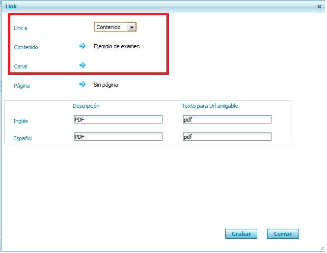 Lo siguiente es crear un Link de tipo Catalogado, y decirle que apunte al contenido que creamos anteriormente.