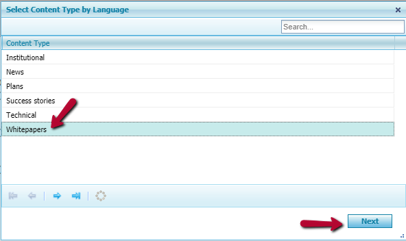 - Clic sobre el tipo de contenido que es el contenido que está creando y clic sobre el botón Siguiente