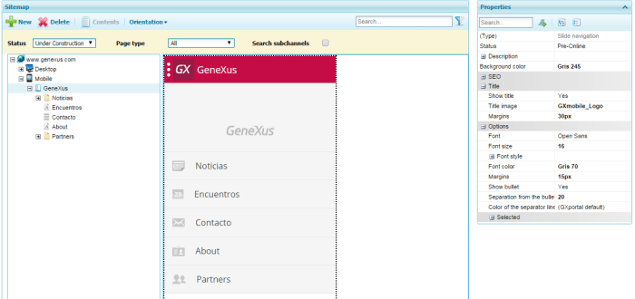 Para iniciar a criação de seu site para dispositivos móveis, selecione no Mapa do site a opção Mobile na árvore apresentada nesta tela: