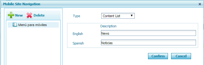 No caso de pararmos sobre o nó principal do menu, a ação Apagar excluirá todo o menu do site para celulares.